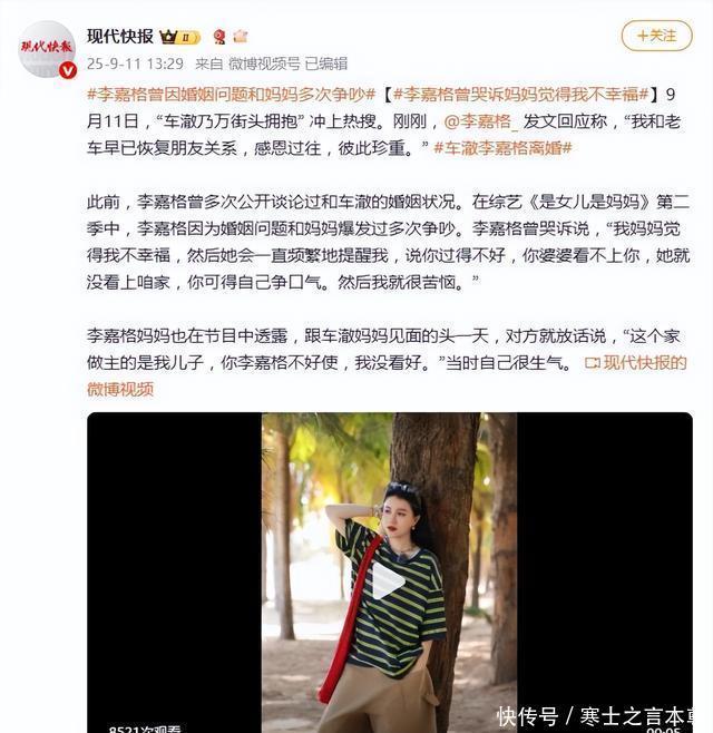 9月11日下昼1点04分,歌手李嘉格在微博平静发文:“我和老车早已规复一又友联系,感德过往,互相进展。”险些同期开云体育(中国)官方网站,知名导演车澈在一又友圈更新了一模同样的执行。这份看似体面的分离宣言,却成了本日一场公论风暴的序幕——蓝本“感德过往”的后面,是狗血剧般的现实剧情。